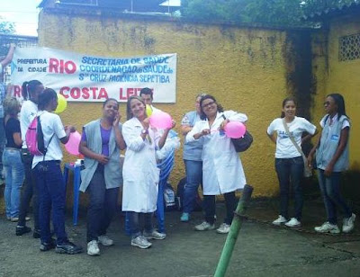 Os funcionários do Centro Municipal de Saúde (CMS) Dr. Ruy da Costa Leite, vem demonstrando muito profissionalismo e competência em seu trabalho, através de seus profissionais de saúde. Mesmo sem um local físico a equipe de saúde tem se desdobrado nos moldes do programa saúde da família e levado educação, prevenção e saúde ao seu público alvo. Com muita criatividade e esforço esses militantes da saúde não tem medido esforços para a manutenção dos padrões de saúde em sua região. Prova são suas iniciativas como a do último dia Dia 24 de março em que celebraram em pleno ar livre o Dia Mundial da Tuberculose, em uma ação contra a doença, em uma tenda informativa e concientizadora. A Tuberculose é uma doença comum na região que afeta a milhares de pessoas, em todo bairro de Santa Cruz.